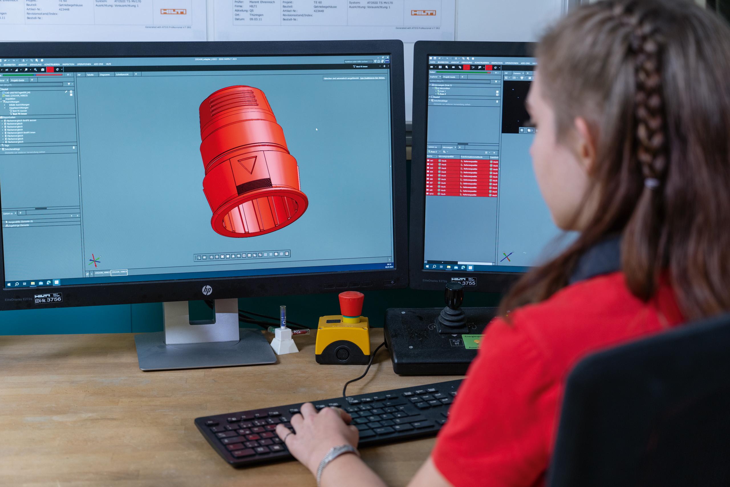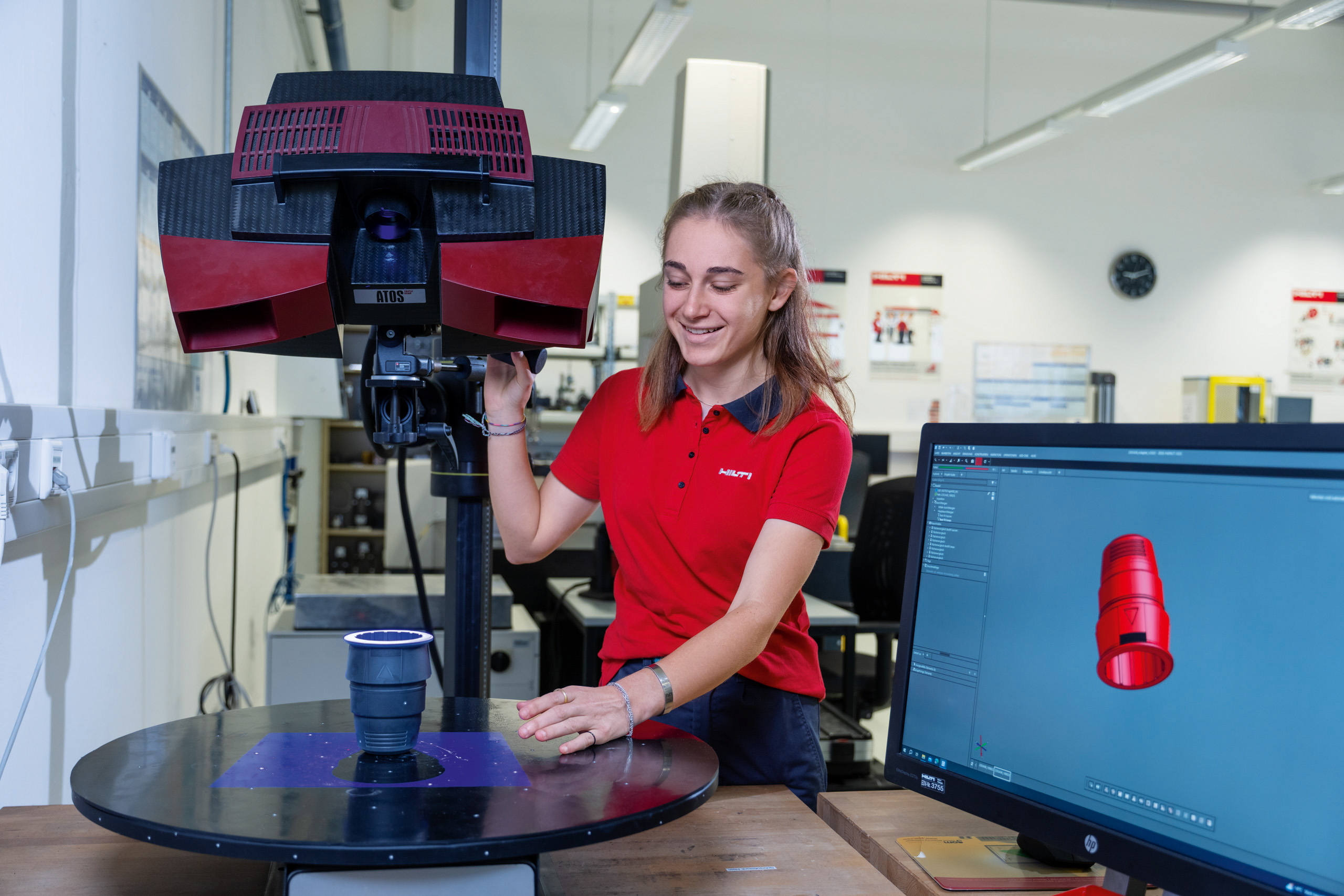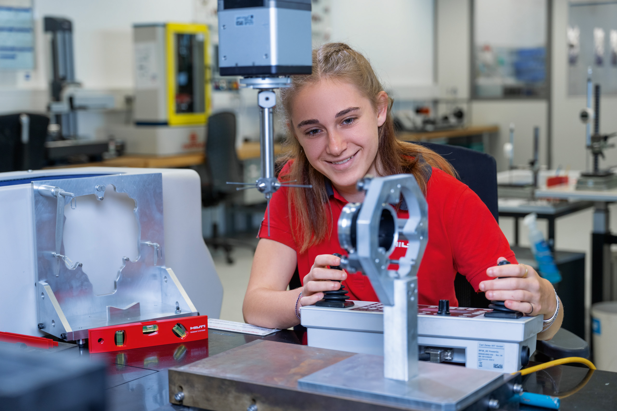 Kund:innen von Hilti erwarten höchste Qualität – und die stellt die angehende Fertigungsmesstechnikerin mit dem Schwerpunkt Produktmessung sicher. Zu ihren Aufgaben zählt, Produkte mittels verschiedener Geräte auf ihre Maße und Funktion zu überprüfen. Zudem sorgt sie für fehlerfreie Produktionsabläufe.