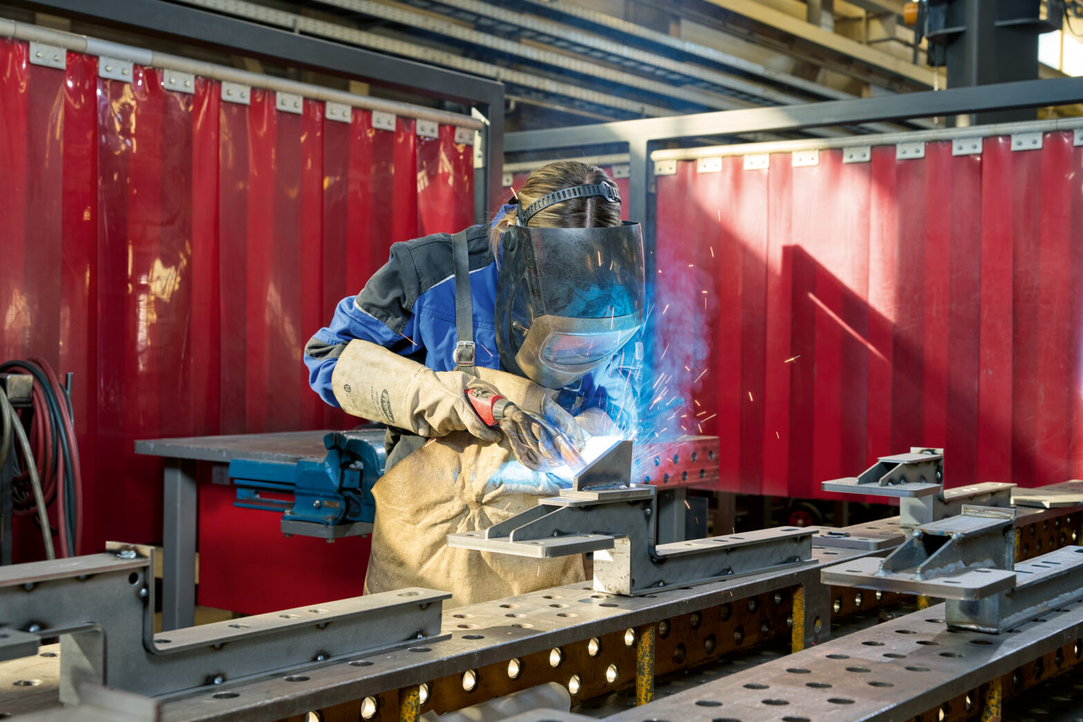 Die Funken fliegen, ein tonnenschwerer Seilscheibenflügel schwebt kontrolliert an einem Kran hängend vorbei, der Geruch von Stahl liegt in der Luft – und mittendrin: Lea Koinig. Gemeinsam mit ihren Ausbildern arbeitet sie auf der selbst aufgebauten, zweistöckigen Lehrlingsinsel an Seilbahnaufträgen aus der ganzen Welt.