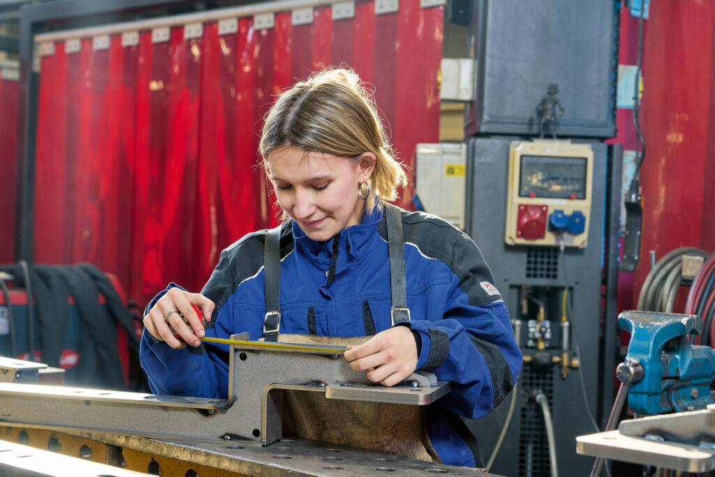 „Schweißen, Flexen, Brennschneiden – mein Team und ich stellen verschiedene Stahlteile her, die später bei Seilbahnen zum Einsatz kommen. Zum Beispiel eine große Seilscheibe, die eine Bahn zum Laufen bringt und aus verschiedenen Bauteilen besteht“, erklärt Lea begeistert. Dafür arbeitet sie unter anderem mit hochmodernen Schweißgeräten mit Touchscreens. Neben einem ruhigen Händchen braucht es für Leas Lehrberuf die Fähigkeit, präzise nach technischen Zeichnungen zu arbeiten, sowie räumliches Denken. Ihr persönliches Erfolgserlebnis bisher? Die kleine Schweißerprüfung, die Lea bereits bestanden hat.