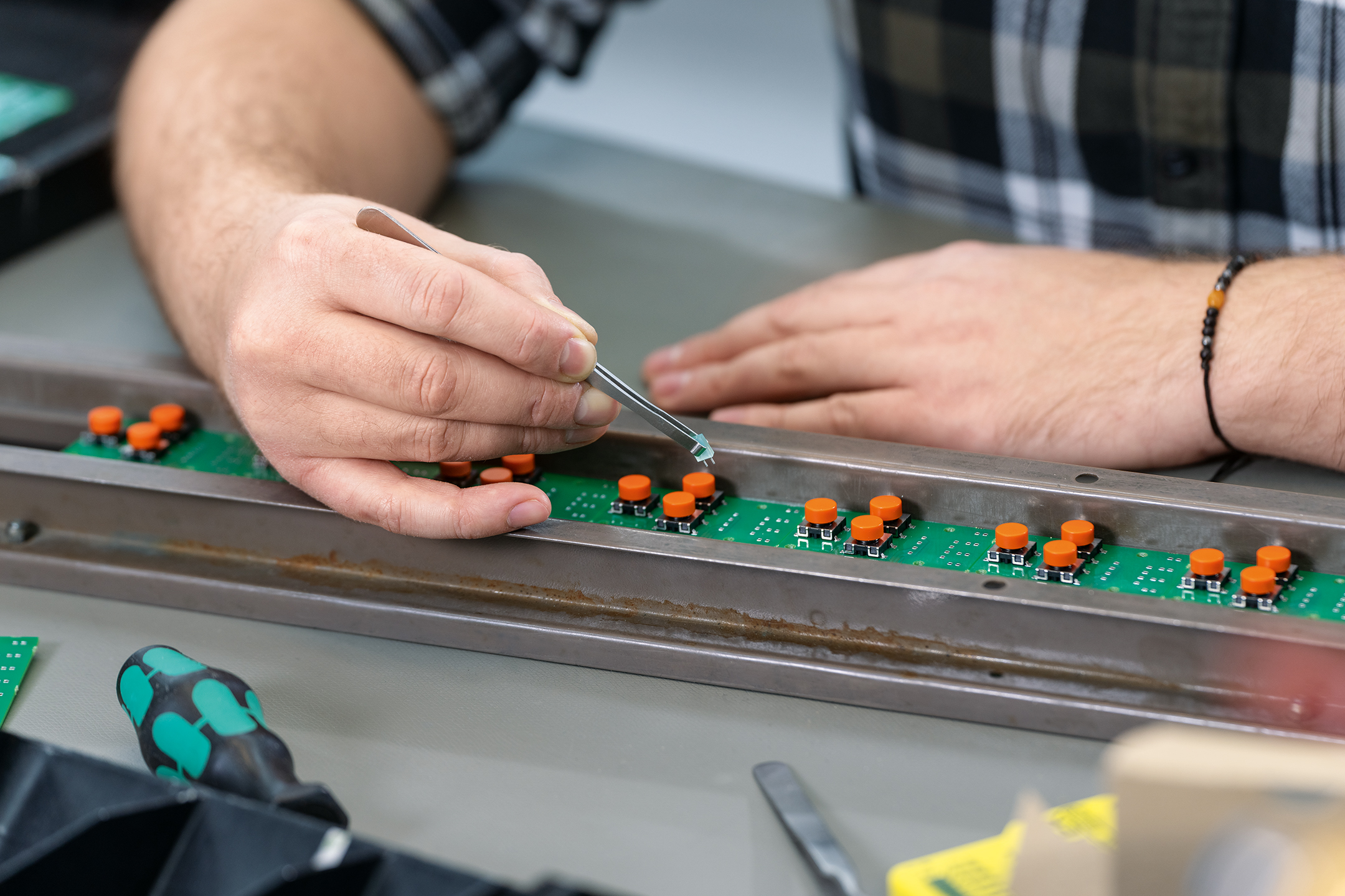 Dominik: Nach dem Abschluss meiner ersten Lehre im Einzelhandel habe ich gemerkt, dass ich mich im technischen Bereich einfach wohler fühle. Ich hatte davor ja bereits zwei Jahre an der HTL Rankweil absolviert und im privaten Umfeld unentgeltlich Konsolen und andere Geräte repariert. Elektronik lag da einfach nahe.