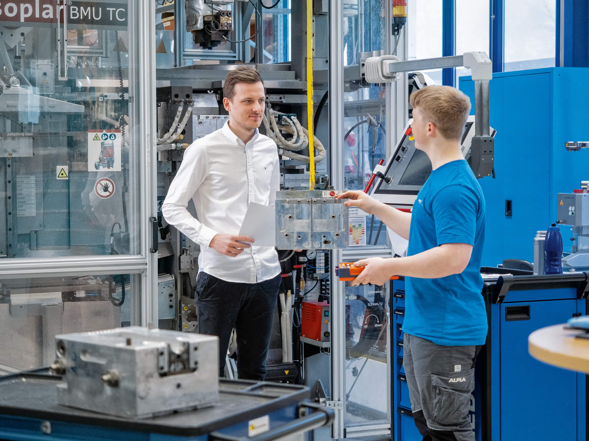 Das Interesse an der Welt der Kunststoffverarbeitung brachte den Gesellen dann tatsächlich wieder zurück in die Schulbank der HTL Bregenz. Dort absolvierte er nach der Lehre den Aufbaulehrgang für Maschinenbau/Automatisierungstechnik. Aber auch in diesen zweieinhalb Jahren arbeitete er in den Sommerferien stets als Praktikant bei ALPLA. „Die technische Ausbildung ist ein Top-Fundament im Leben, auf dem man aufbauen kann, und ich bin immer wieder froh, auf dieses technische Grundgerüst zurückgreifen zu können“, betont Julian. „Das Technikland Vorarlberg bietet hier viele spannende Möglichkeiten.“ Nach dem Aufbaulehrgang kehrte er 2018 wieder zurück zu ALPLA und setzte berufsbegleitend noch das Studium des Wirtschaftsingenieurswesens obendrauf.