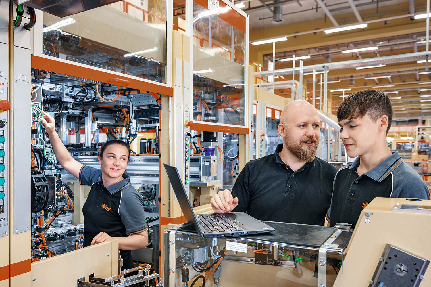 Blum bietet drei Möglichkeiten, um als Elektrotechniker:in durchzustarten. Wer sich nach der Matura beruflich weiterentwickeln möchte, kann an der FH Vorarlberg „Elektrotechnik Dual“ studieren und im Unternehmen Berufspraxis sammeln. Für wen ein Studium nicht in Frage kommt, der kann ab diesem Herbst neu die Duale Akademie Elektrotechnik absolvieren, und das mit verkürzter Lehrzeit. Bei Blum ist auch die Wahl der klassischen Lehre ein Volltreffer. Die jungen Fachkräfte arbeiten früh in den Abteilungen aller Werke mit und lernen direkt von Expert:innen. Doch egal, welchen Weg junge Menschen wählen, Elektrotechnik ist ein Beruf mit Zukunft: Interessierte lernen, wie komplexe Produktionsanlagen aufgebaut, programmiert, optimiert bzw. repariert werden, zudem beschäftigen sie sich mit Netzwerktechnik und Informatik.