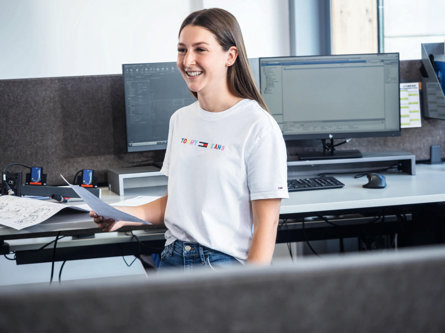 Auch schätze sie die ruhige Atmosphäre, die die Arbeit als Konstrukteurin per se mit sich bringe: „Trotz laufender Deadlines herrscht hier eine angenehme Stimmung und unkomplizierte Herangehensweise an Projekte. Der Umgang mit Problemen und die damit verbundene Lösungssuche ist entspannt und erfolgt intuitiv.“