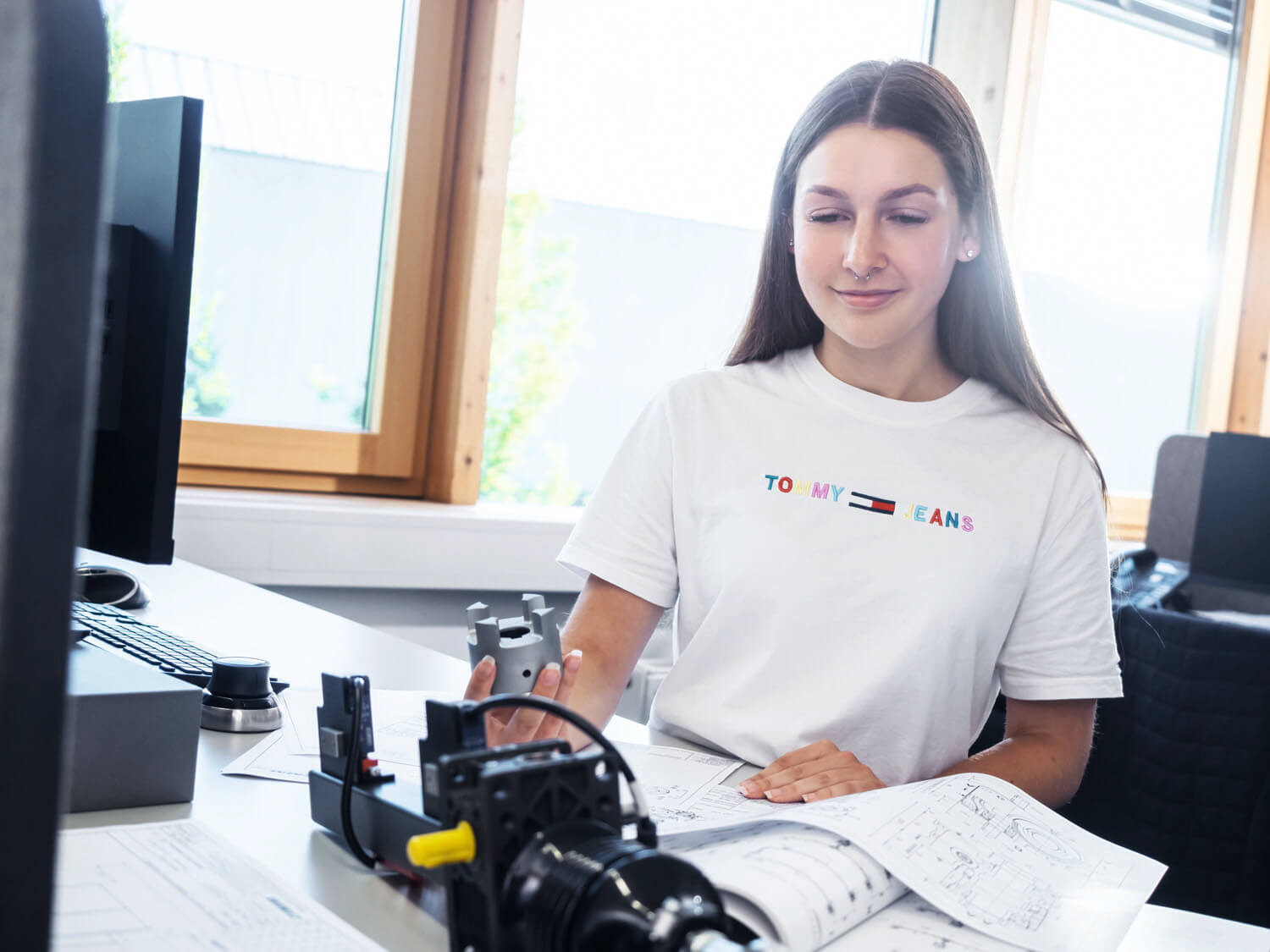 Wer sich deshalb für eine Lehre im Konstruktionswesen entscheide, der solle sich vorab gut überlegen, was die eigenen Stärken und was die persönlichen Beweggründe und Motivationen sind, so Shanice. „Vernetztes Denken, Zusammenhänge erkennen, ein ausgeprägtes technisches Verständnis plus eine Affinität fürs Detail, das sind die besonderen Fähigkeiten, die es für diese Stelle braucht.“