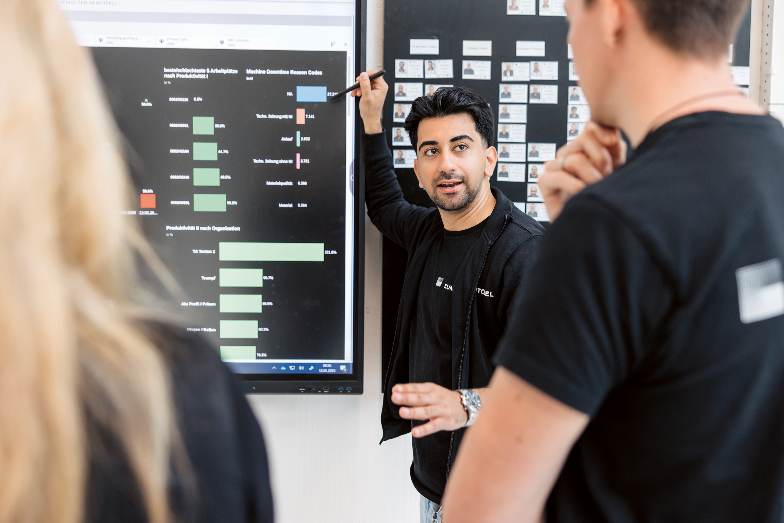 Weiterbildung ist für Oguzhan fixer Bestandteil des Berufsalltags: fachlich wie persönlich. Interne und externe Schulungen unterstützen die Entwicklung, die Aufstiegschancen sind bei der Zumtobel Group vielfältig. Viele ehemalige Lehrlinge sind heute Führungskräfte, Expert:innen oder hochqualifizierte Fachkräfte. Auch internationale Erfahrungen sind projektabhängig möglich – im Austausch mit Kolleg:innen von anderen Standorten.