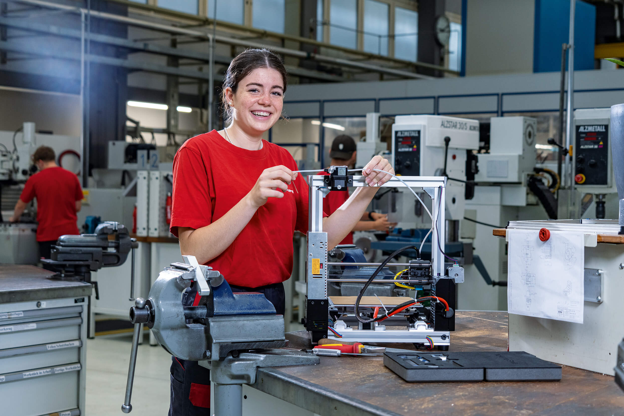 „Wenn dir dein Lehrberuf gefällt und du deine Ausbildung gut abschließt, hast du ausgezeichnete Jobchancen – egal ob als Mann oder Frau“, ist sich Emilie sicher. In ihrem Lehrjahr ist sie zwar die einzige Frau im Lehrberuf Maschinenbautechnik, insgesamt ist aber rund ein Viertel des Teams weiblich. „Manchmal werde ich als Frau unterschätzt und muss mich beweisen. Zum Glück kann ich mich aber gut gegen die Jungs durchsetzen“, lacht sie.