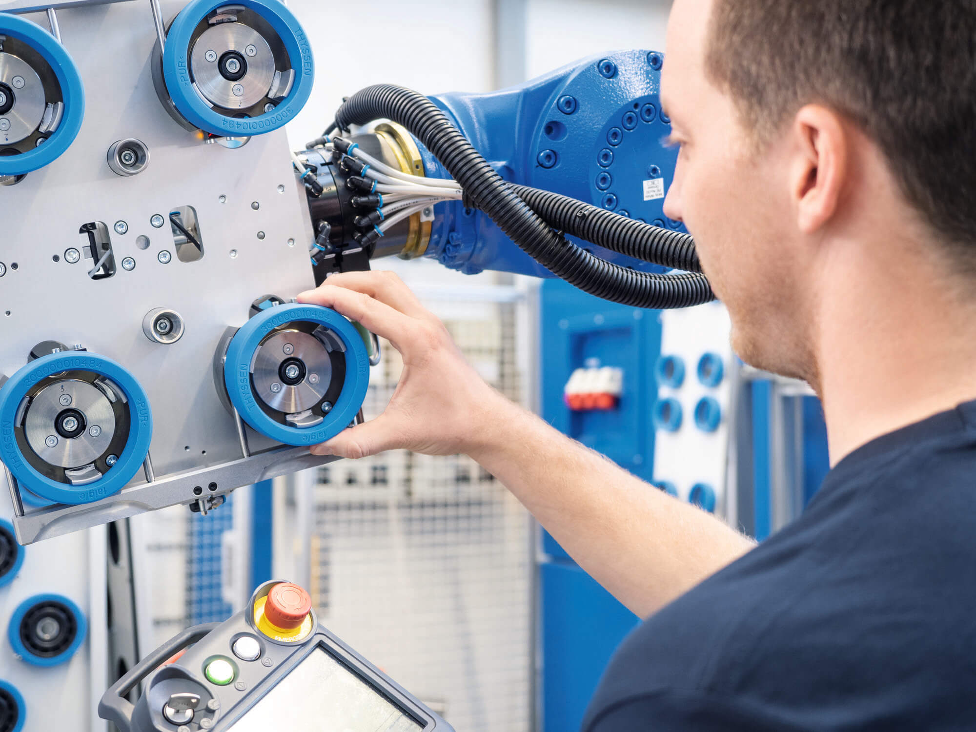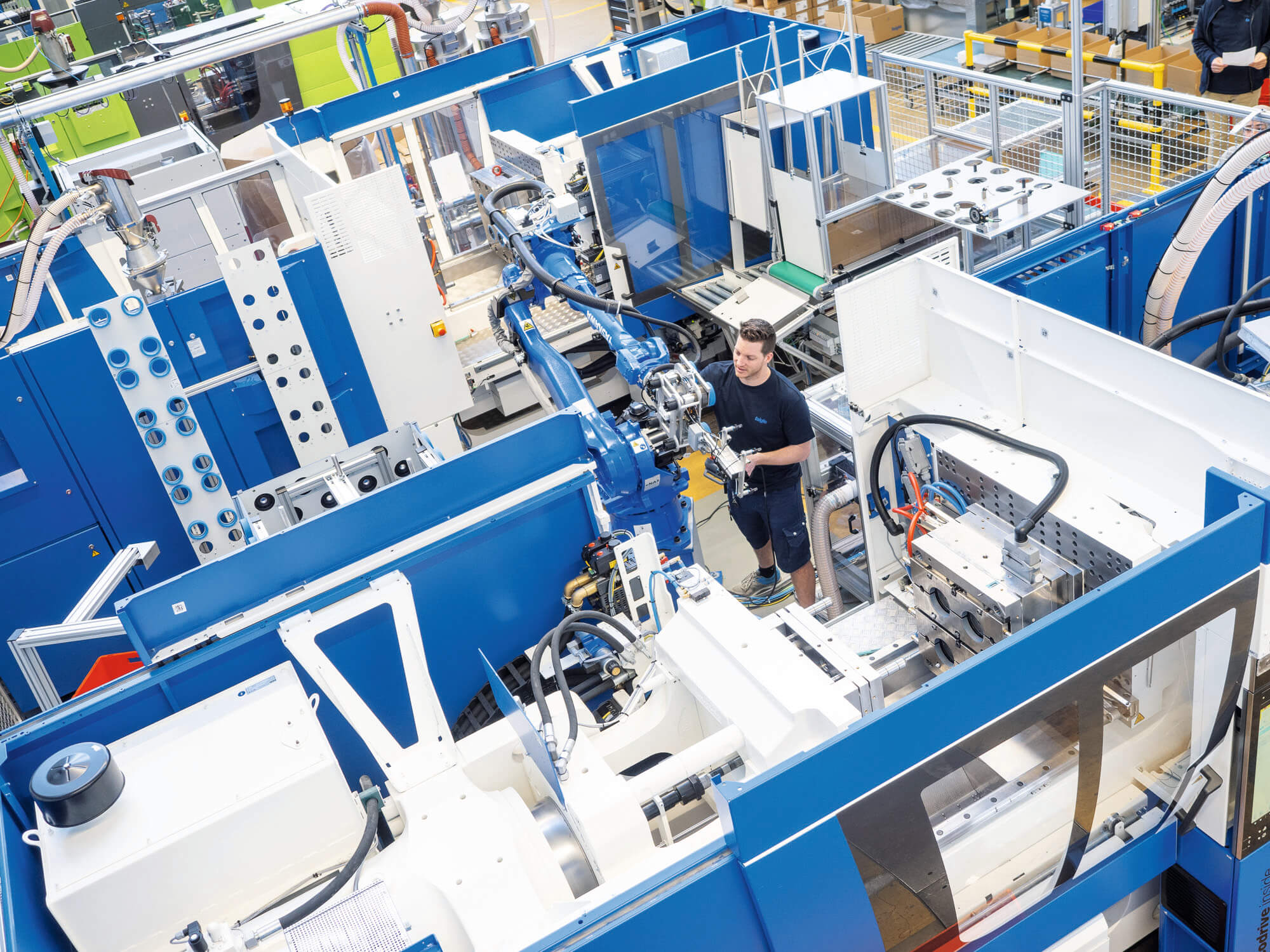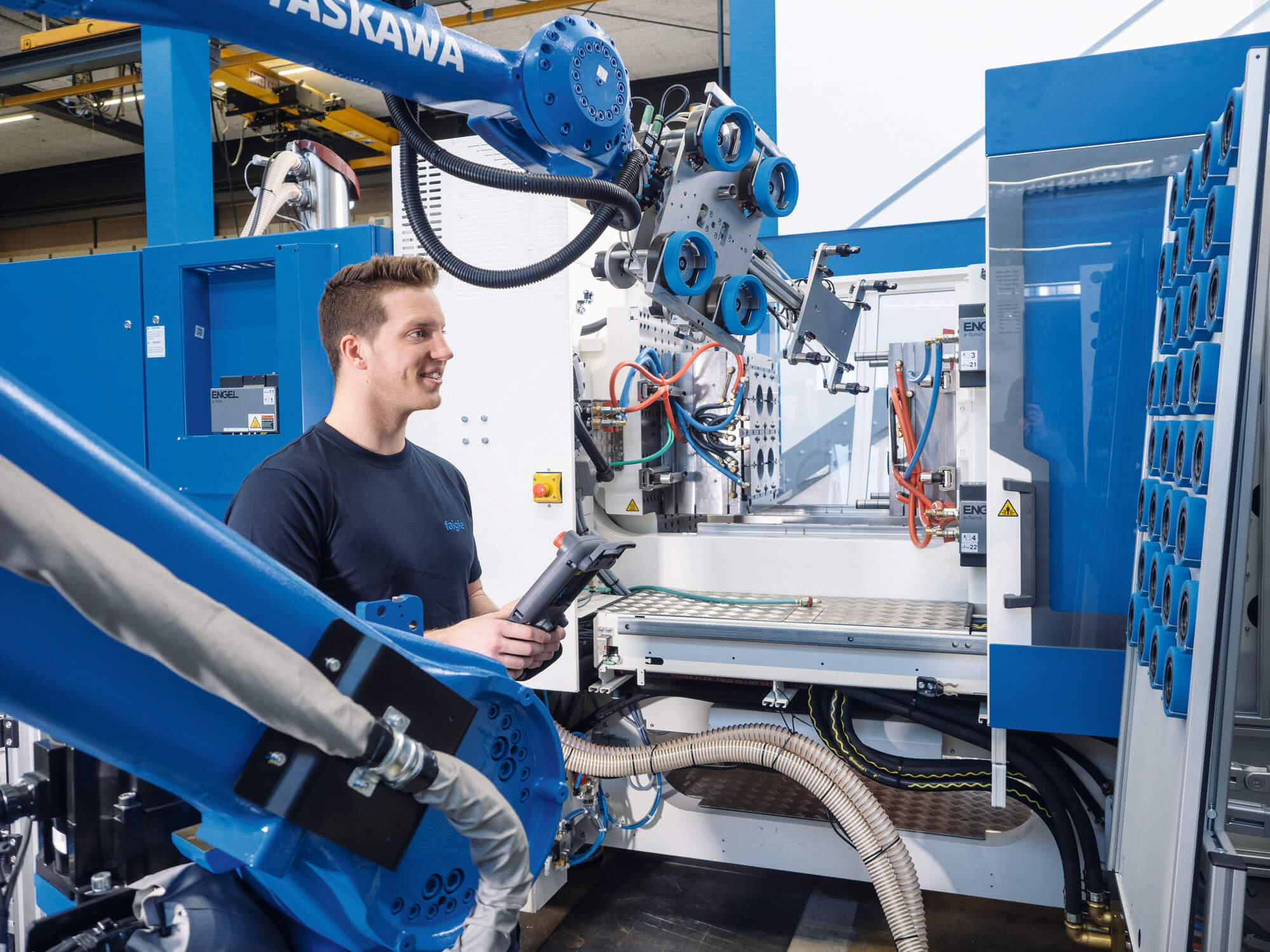 Frank: Als Teamleader bin ich für sechs Mitarbeiter:innen verantwortlich. Wir haben zusammen unsere Spritzgussmaschinen im Blick. Das heißt, wir stellen die Maschinen ein und optimieren sie. Als Teamleiter koordiniere ich alles und bin zugleich die Schnittstelle bzw. der Ansprechpartner für Projektleiter:innen anderer Abteilungen, aber auch für Anwendungstechniker:innen und Produktentwickler: innen. Alle technischen Anfragen laufen sozusagen über meinen Tisch. Und auch unsere Lehrlinge in der Kunststofftechnik betreue ich. Kurzum: Ich schaue, dass die Produktion in unserem Segment reibungslos läuft und dass alle happy sind (lacht).