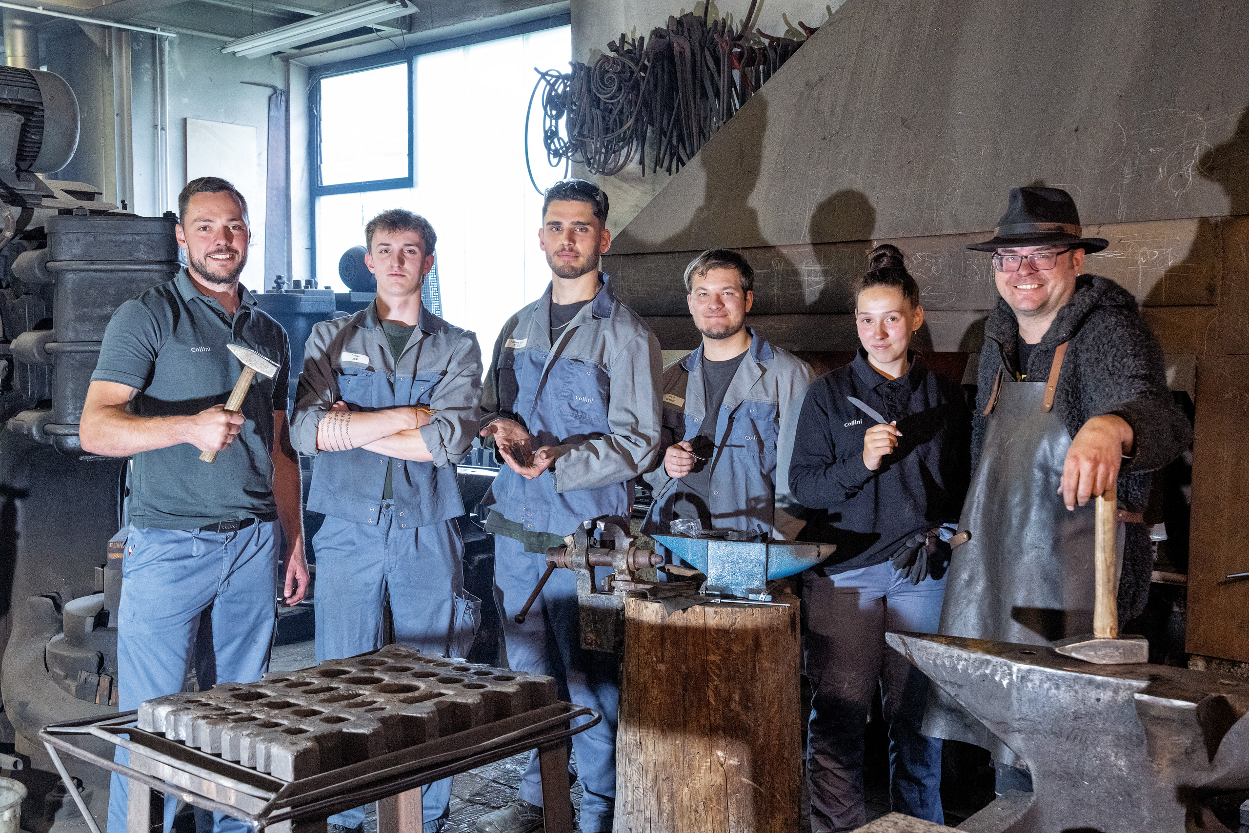 Collini nutzte dieses Angebot, um seine angehenden Oberflächentechniker:innen bewusst mit der ursprünglichen Form der Metallbearbeitung in Berührung zu bringen und ganz nebenbei die Lust am kreativen Upcycling zu wecken. Das Schmieden eines eigenen Jausenmessers und die Gestaltung eines Bretts aus firmeneigenem Schrottmaterial schlugen auch symbolisch die Brücke zu den Wurzeln des Unternehmens, denn Collini begann mit dem Schleifen von Scheren und Messern, bevor es sich zu einem europaweit führenden Spezialisten für Oberflächentechnik entwickelte.