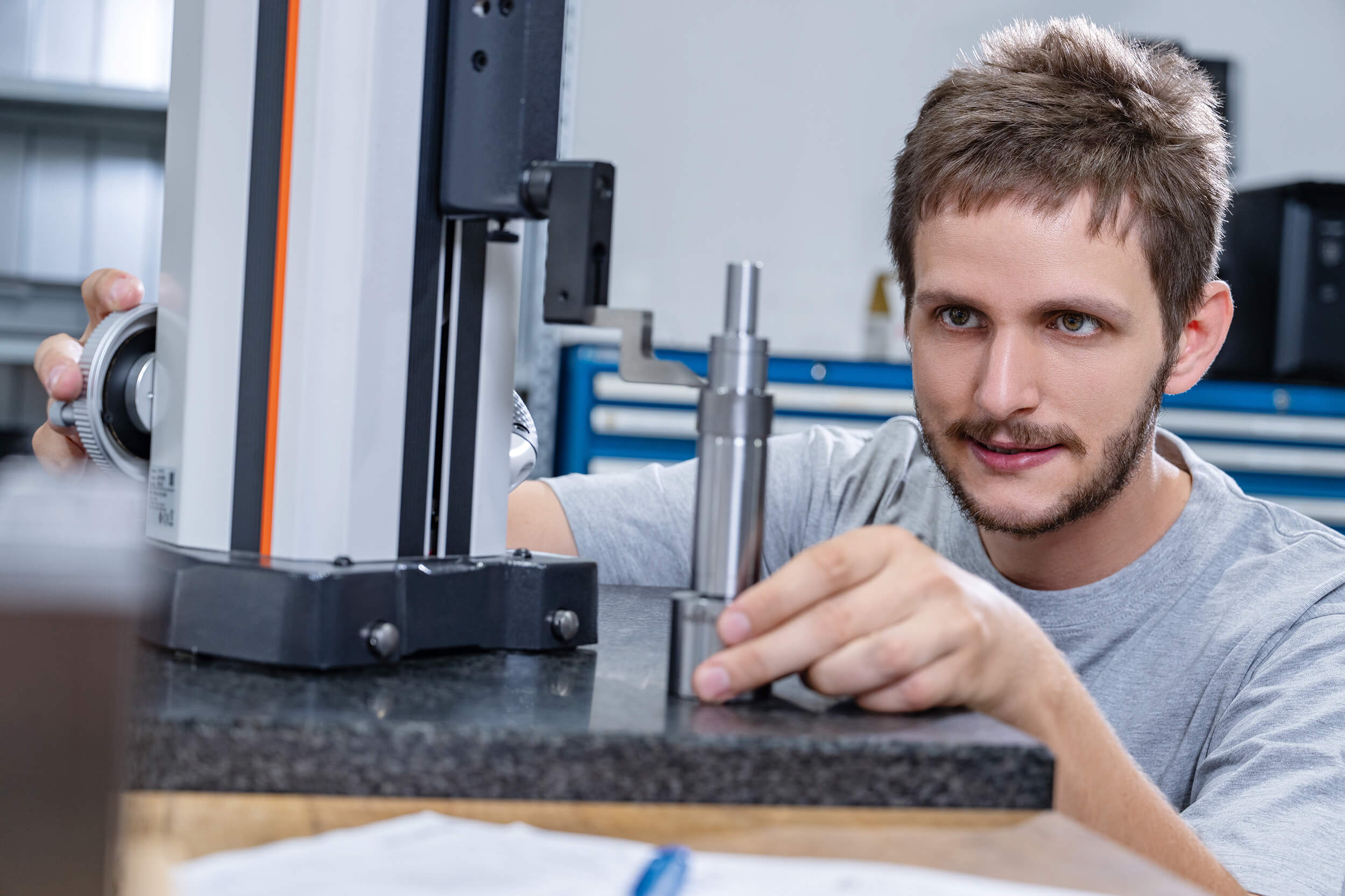 Außerdem trägt der angehende Zerspanungstechniker die Verantwortung für den Zustand der Maschinen, die er bedient, für die korrekte Ausführung der Arbeitsschritte und die ordnungsgemäße Weitergabe seiner Aufträge. Michael scheut sich nicht vor Verantwortung – ganz im Gegenteil: „Die Verantwortung, Prozesse eigenständig durchzuführen, gefällt mir ganz besonders an meiner Arbeit.“