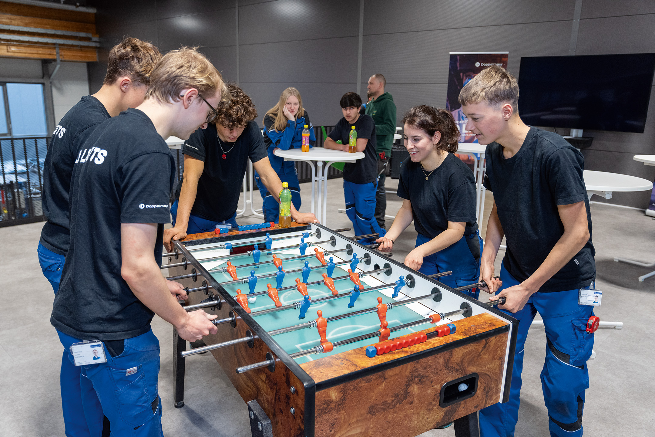 Pause Zur Pause setzen wir Lehrlinge uns alle zusammen, essen etwas und bringen uns auf den neuesten Stand. Essen nehmen wir entweder selbst von zu Hause mit oder wir holen uns ein Brötchen – oft spielen wir auch Tischfußball.