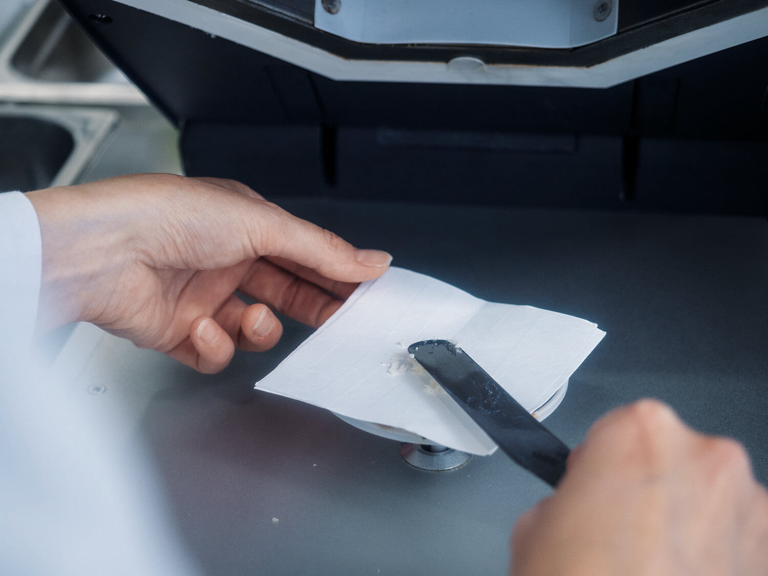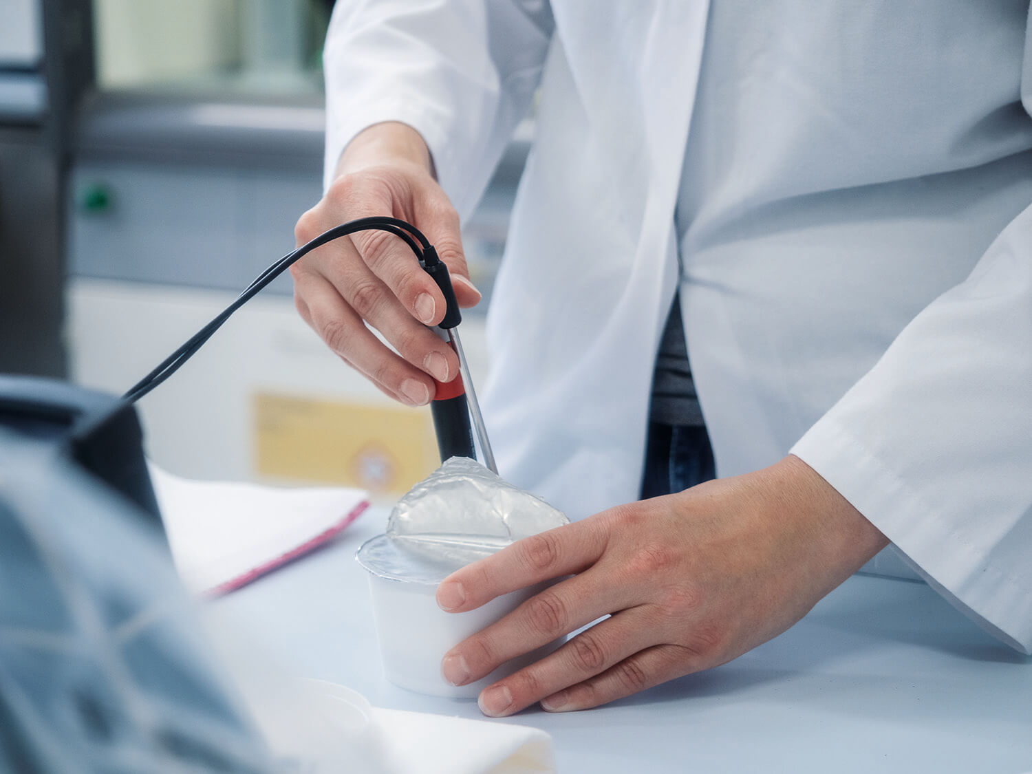 Beate: Da wäre zum Beispiel die Überprüfung der Funktionalität und der sensorischen Eigenschaften der veganen Alternativen oder die Überprüfung der technischen Verarbeitbarkeit: Lässt sich so ein veganer Käse gut produzieren, zerfällt oder klebt er? Wie greift er sich an? Wie ist das Gefühl auf der Zunge? … und all diese Dinge. Dann muss ich auch immer wieder Verkostungen durchführen, das mag ich besonders gern. Last but not least gehören auch die entwicklungstechnische Planung und Begleitung von Musterproduktionen auf unseren Produktionsanlagen in Hörbranz, das Auffinden und Evaluieren neuer Rohstoffe und die Fertigung von Mustern sowie der Musterversand bei Kundenanfragen zu meinem Job.