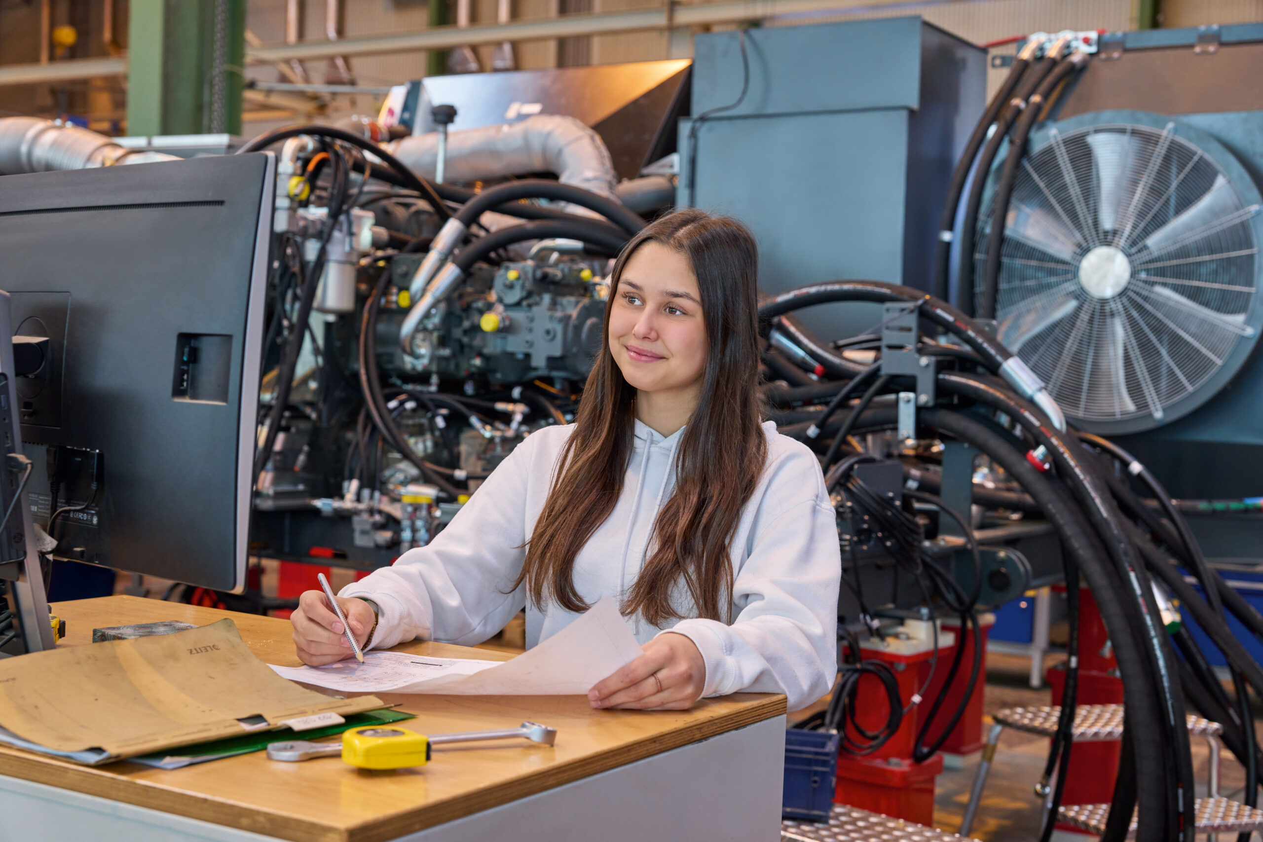 Als angehende Konstrukteurin lernt Lorena, Produkte und Bauteile zu planen und zu entwickeln. Sie erstellt technische Zeichnungen und 3D-Modelle, führt Berechnungen durch und stimmt sich mit anderen Abteilungen ab. „Man arbeitet eng mit verschiedenen Teams zusammen, um Lösungen zu finden und Ideen umzusetzen.“ Sie schätzt besonders, dass sie nicht nur im Büro arbeitet, sondern auch umfassende Einblicke in die Werkstatt bekommt – von der Montage bis zum Stahlbau.