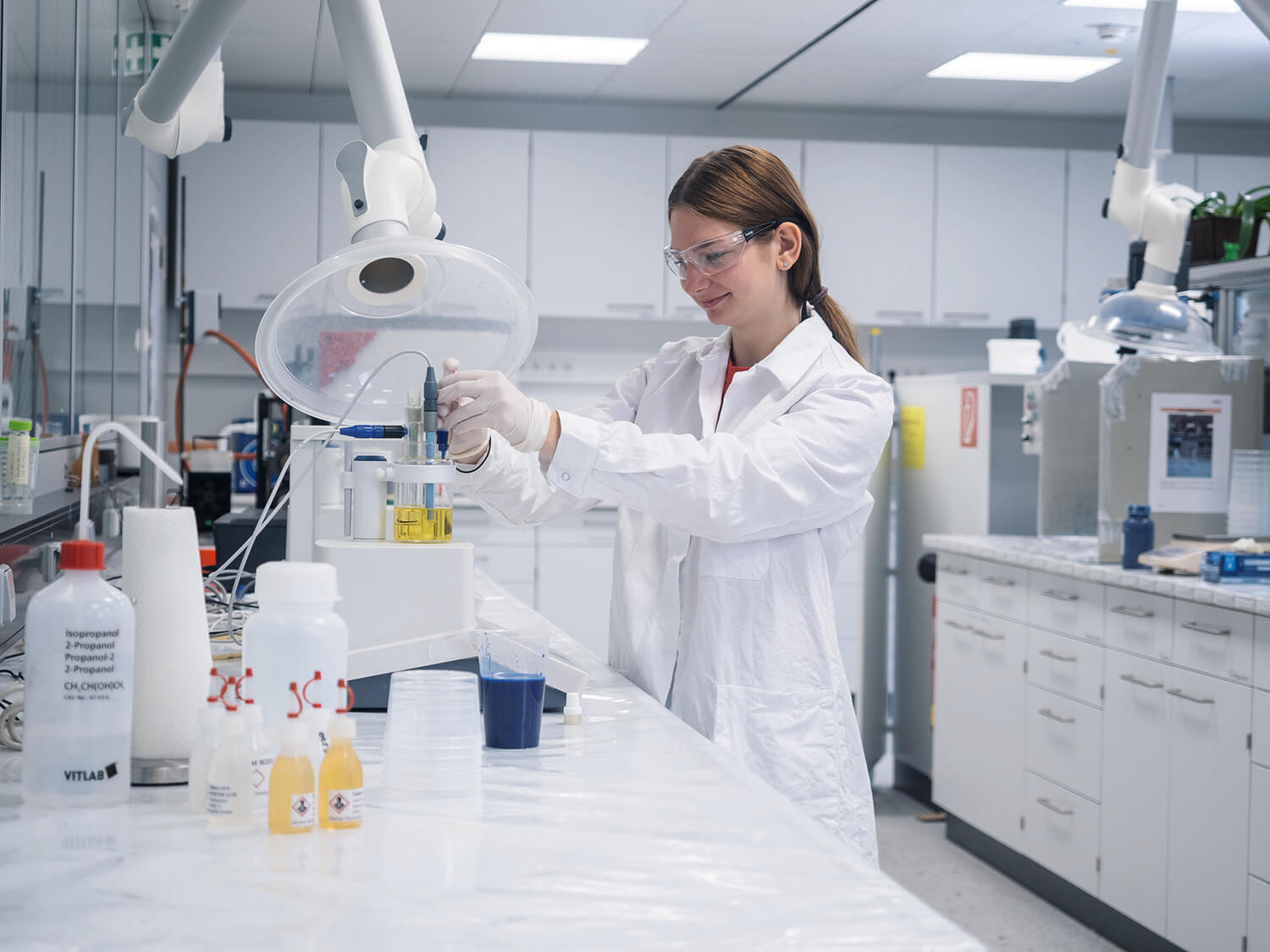 „Schon in der Mittelschule gehörten Physik und Chemie zu meinen Lieblingsfächern. Zuerst wusste ich nicht, dass es eine Lehre zur Labortechnikerin gibt. Doch als ich per Zufall auf diese Lehre gestoßen bin, habe ich meine Chance ergriffen“, verrät Teresa gleich zu Beginn.