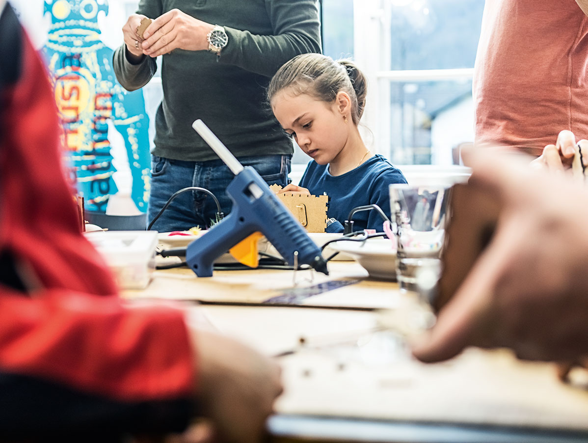 Im Kids OpenLab in Dornbirn treffen sich Mädchen und Jungen zwischen vier und elf Jahren zum Lernen und Ausprobieren. Dazu warten verschiedene Spielstationen mit Experimenten auf die Kids – und auch immer ein großer Wow-Effekt! Denn wer selbst tüftelt oder sich an den speziellen Lernspielen in den Bereichen Elektrotechnik und Coding versucht, entdeckt ständig etwas Neues. Workshops und Kurse helfen dabei, das erworbene Wissen zu vertiefen.